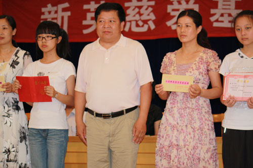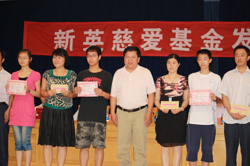 7月6日,公司基金会理事许祥高、秘书曹晓燕参加了今年我会在新桥中学捐资助学的仪式。公司组建的新英慈爱基金会自2009年下半年起本着“心系母校发展,关爱师生成长”的良好心愿,在新桥中学设置了新英慈爱助学基金。此次仪式上,基金会理事许祥高亲自为16名品学兼优的学生和3名具有影响的老师颁发了我会的资助金。许理事也表示今年9月基金会仍将持续其善举,进行2010年度新一轮的捐资助学活动,帮助更多有困难、有能力的优秀学生。我会也殷切的希望通过这样的形式能让获得奖励和帮助的学生奋发有为,同时也希望广大师生家长们能关心慈善事业,共同来努力创造一个和谐、美好、幸福的社会。